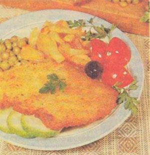Разделка рыбы. Живую рыбу оглушить, а затем обескровить (острым кончиком ножа сделать глубокий разрез между плавниками и дать стечь крови). Чешую с рыбы снять ножом или специальной рыбочисткой, стараясь не повредить кожу. Рыбу с крепко сидящей чешуёй (речной окунь, линь) рекомендуется облить горячей водой, после этого чешую легко удалить. Ножницами или ножом обрезать плавники. У колючих рыб перед очисткой чешуи лучше удалить плавники с шипами, т. к. их уколы очень болезненна: и долго не заживают. У рыб, не имеющих чешуи, перед разделкой надо тщательно удалить слизь. Для этого тушку рыбы протереть солью. Очищенную рыбу хорошо промыть холодной водой, а затем вьшотро- шить, разрезав брюхо. Затем вынуть внутренности, стараясь не раздавить жёлчный пузырь, удалить жабры, зачистить чёрные плёнки. Разделанную рыбу тщательно промыть. При разделке рыбу не рекомендуется сильно изгибать и мять, т. к. это ухудшает её качество. Крупную рыбу следует разрезать вдоль позвоночника на 2 половины (филе). Для того чтобы получить филе без костей и кожи, рыбу, не снимая чешуи, нужно выпотрошить и промыть, а затем срезать с позвоночника сначала одно филе, потом другое, положить на стол кожей вниз и, придерживая рёберные кости ладонью левой руки, срезать их ножом. После этого с филе снять кожу вместе с чешуёй.